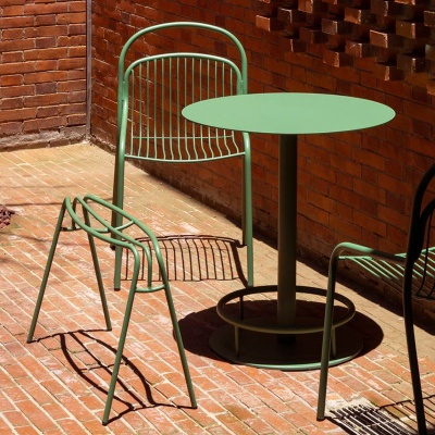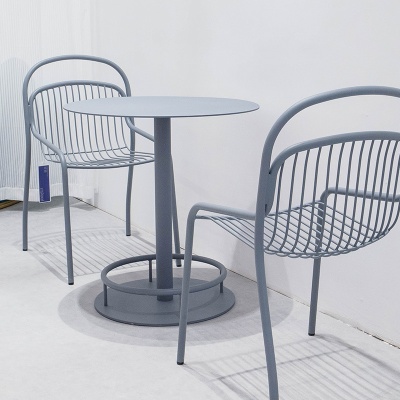 Wrought iron outdoor garden leisure platform table cafe bakery open air small round table metal high table chair custom