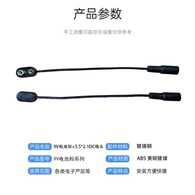 9V硬壳电池扣插头DC公头母头连接器耐用的9V电池配件卡扣仪