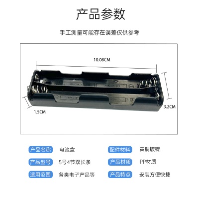 现货直供五号电池盒 带线带插针卡扣双条形串联5号4节长条电池盒