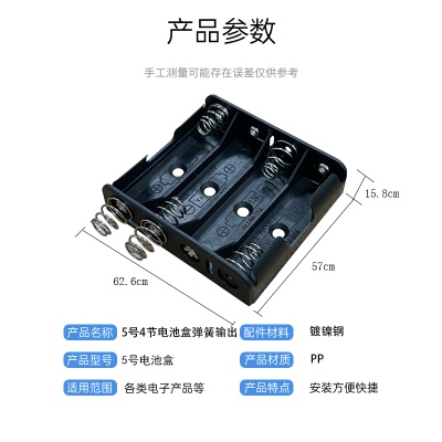 4四节AA5五号无盖无开关6V电池盒装弹簧万能输出6V五5号AA电池盒