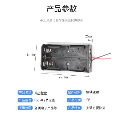 18650两2节并联无盖PP料电池盒座仓 3.7V输出并联电池盒