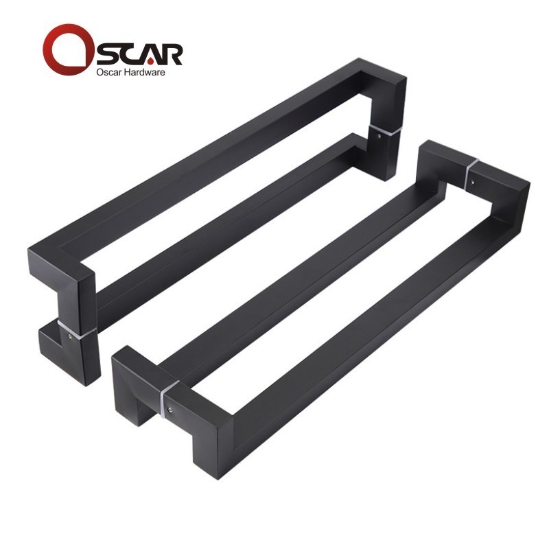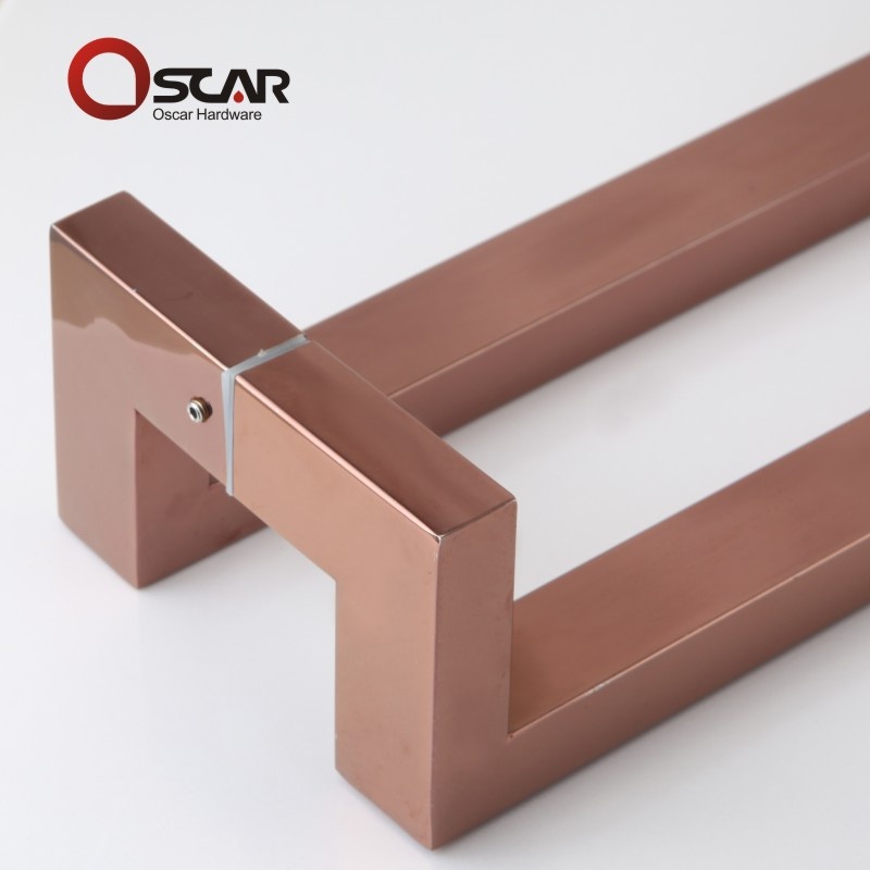 Glass door pull middle square tube four-bend door pull double-opening sliding door handle rose gold stainless steel handrail