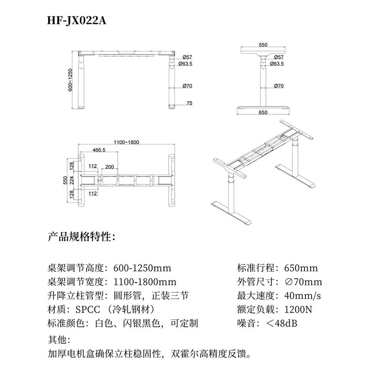 商品名称:跨境现货智能双电机电动升降桌腿桌架站立式办公自动升降桌支架