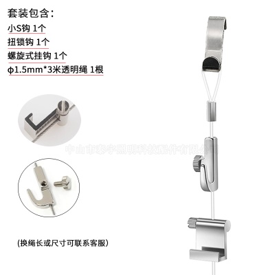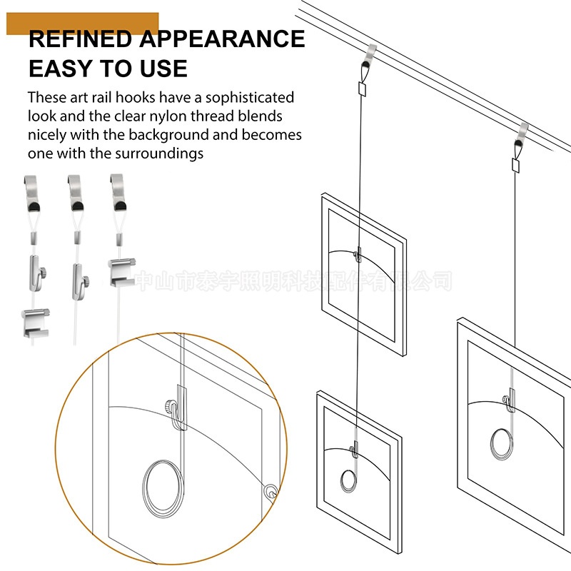 商品名称:钢丝轨道条挂画器挂画挂钩吊绳画廊画展可调节挂画线灯饰五金吊线
