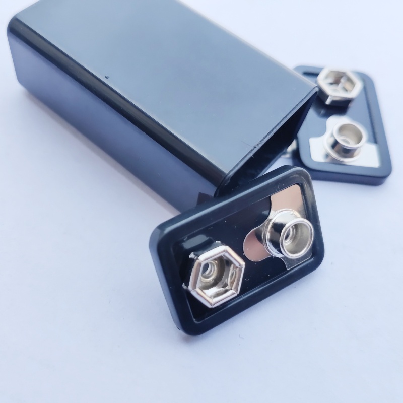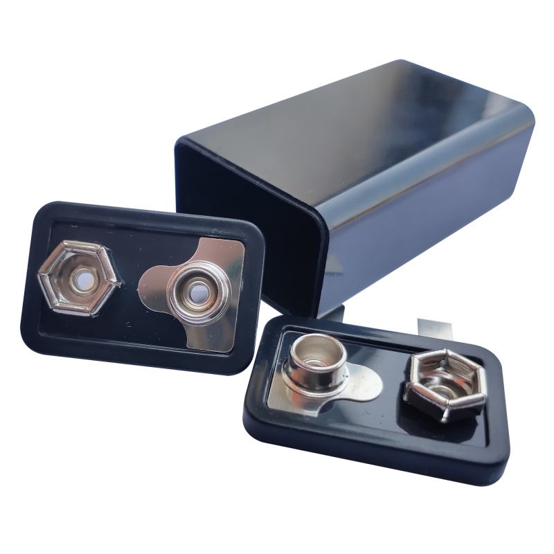 9V锂电电池盒外壳黑色ABS超声波9v方块锂电池电池加工配件黄铜镍