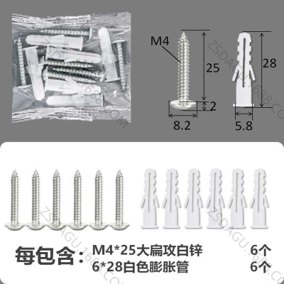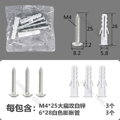 配件包大扁攻M4*25白锌白色膨胀管6+6件套