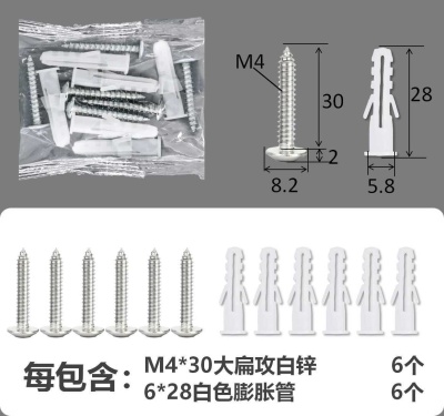 配件包大扁攻M4*30白锌白色膨胀管6+6件套