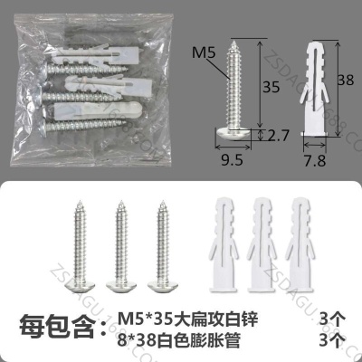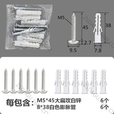 配件包大扁攻M4*16白锌白色膨胀管3+3件套
