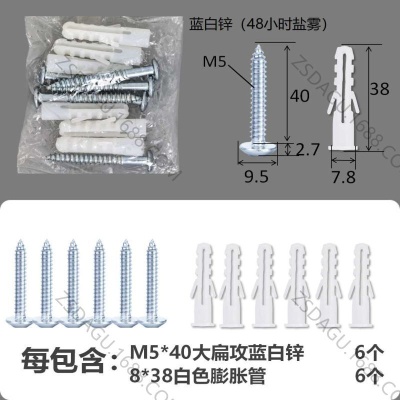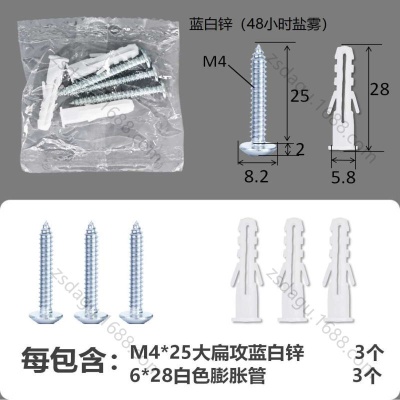 配件包大扁攻M4*25蓝白锌白色膨胀管3+3件套