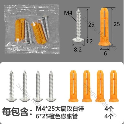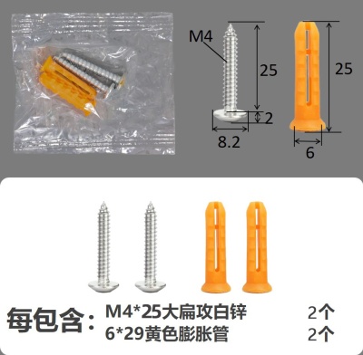 配件包大扁攻M4*25白锌橙色膨胀管2+2件套