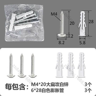 配件包大扁攻M4*20白锌白色膨胀管6+6件套