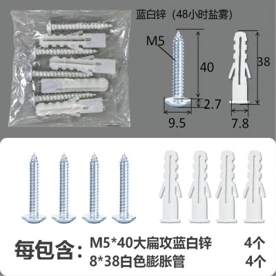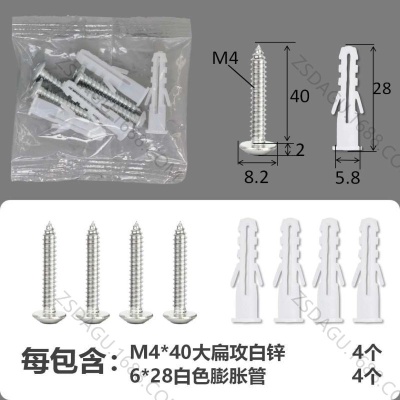 配件包大扁攻M4*16白锌白色膨胀管4+4件套