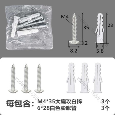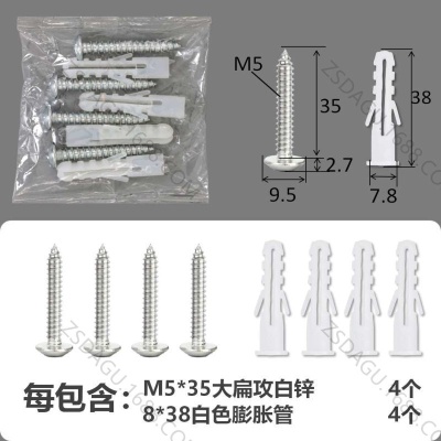 配件包大扁攻M4*35白锌白色膨胀管2+2件套