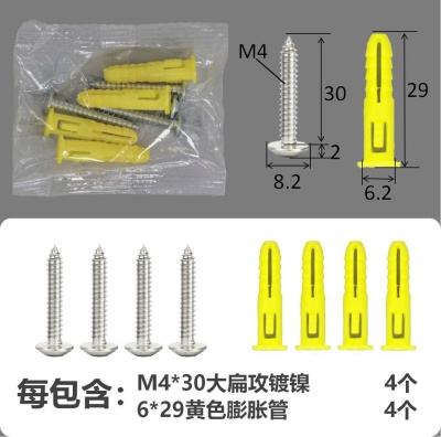 配件包大扁攻M4*30白锌黄色膨胀管4+4件套