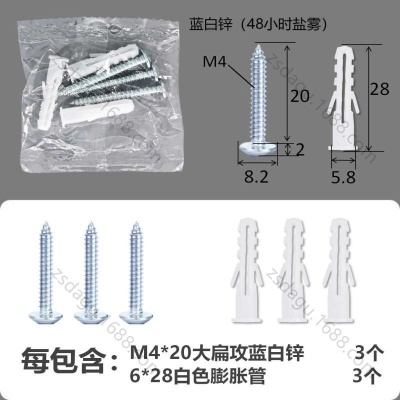 配件包大扁攻M4*20蓝白锌白色膨胀管3+3件套