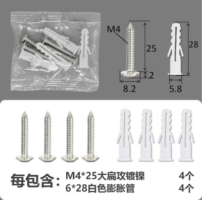 配件包大扁攻M4*25镀镍白色膨胀管4+4件套