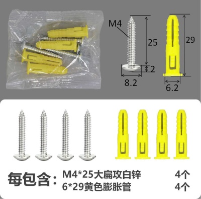 配件包大扁攻M4*25白锌黄色膨胀管4+4件套
