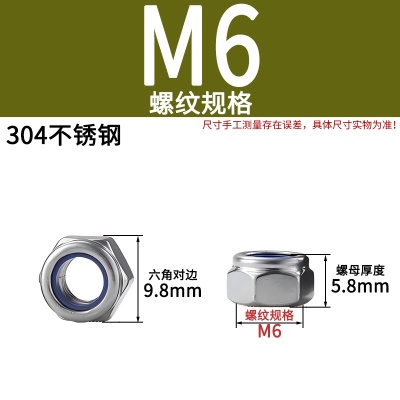 201不锈钢防松螺母M6