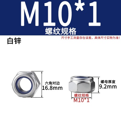 防松螺母M10*1牙(细牙)白锌