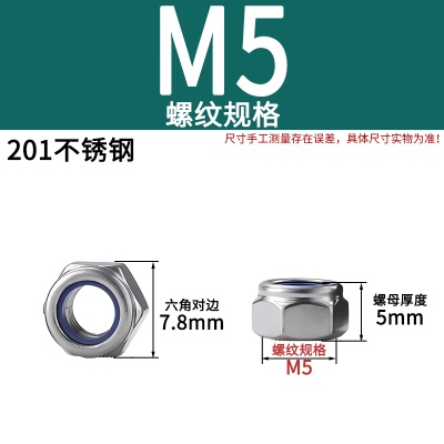 201不锈钢防松螺母M5